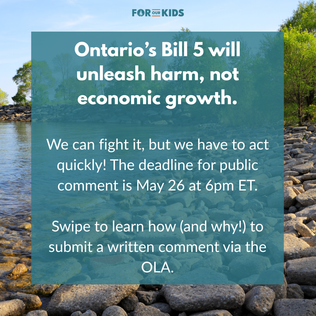 As parents, grandparents, and caregivers, we are appalled by Bill 5, aka “the Protect Ontario by Unleashing Our Economy Act.”